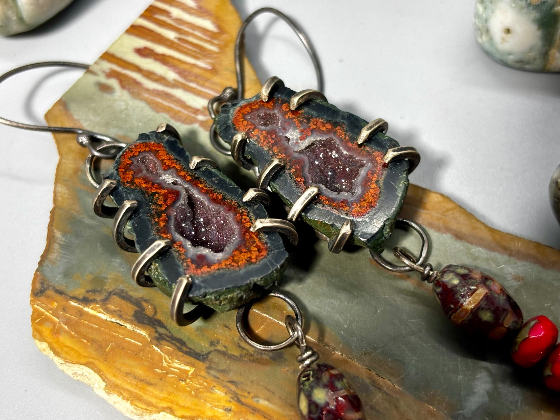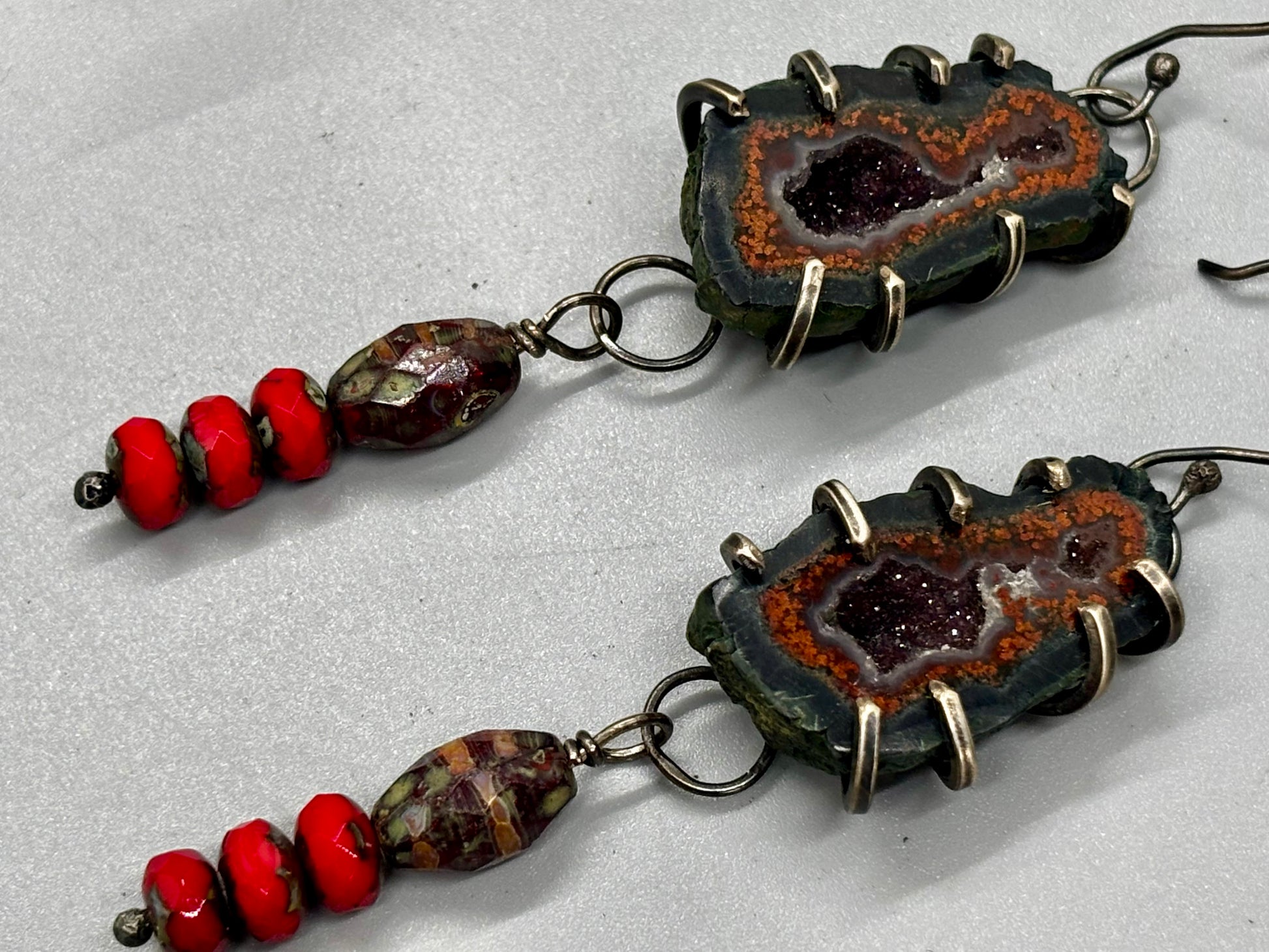 Tabasco Geode Sterling Silver Czech Glass Earrings